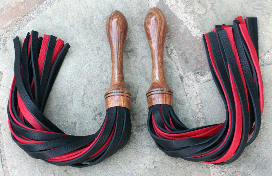 From deep bullhide thud to the soft caress of rabbit fur, from the wicked sting of cog tips to the sensual feel of braids, our floggers offer an endless mix of pleasure and pain. We pride ourselves on the individuality of our floggers – you'll never see another person with an identical design in their collection. This is because each handle, each set of falls, is worked by hand. Our collection is not mass-produced or outsourced; each is a work of art with unparalleled quality produced by a local artisan.
